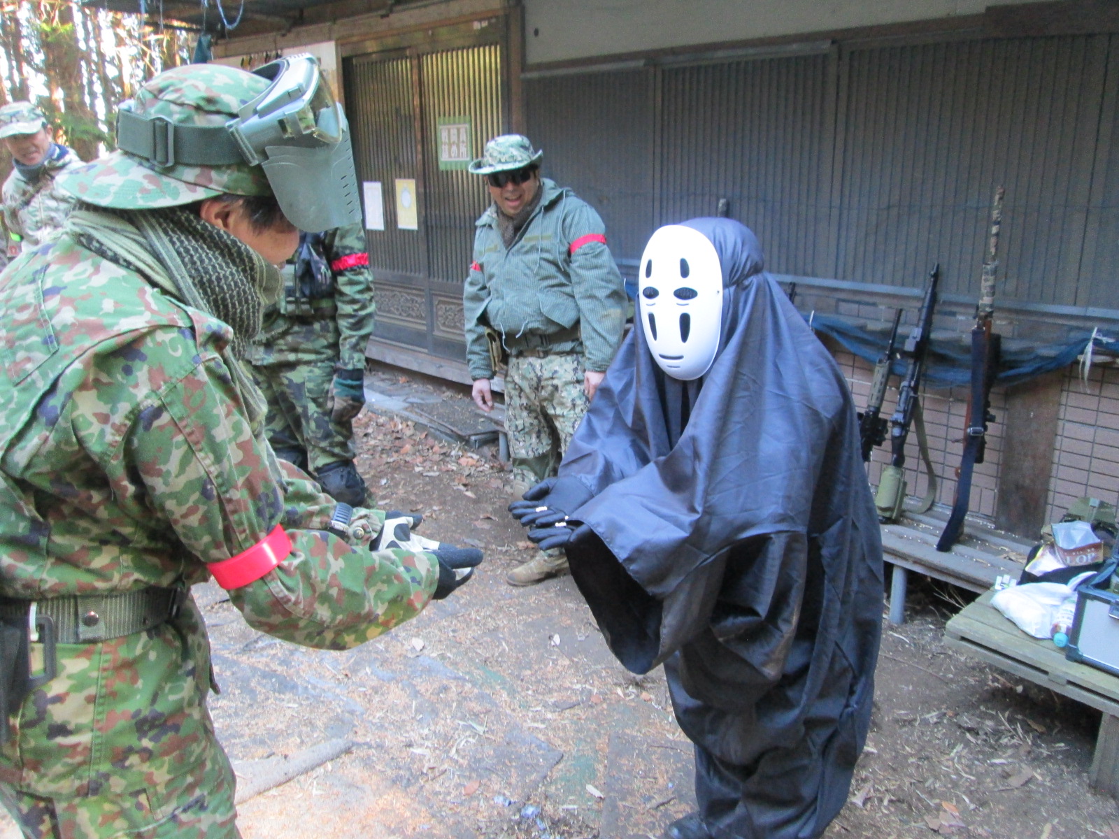 手前のカッパが戦闘服を忘れ、まじで落ち込んでいました。
