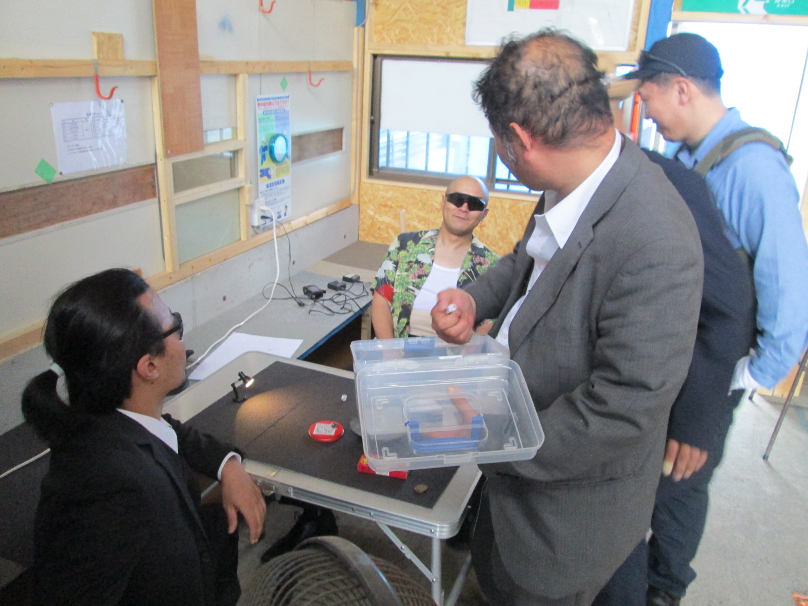変なオジサン達が集まってなにやら大金が。。。 (100均のオモチャの札束であります)