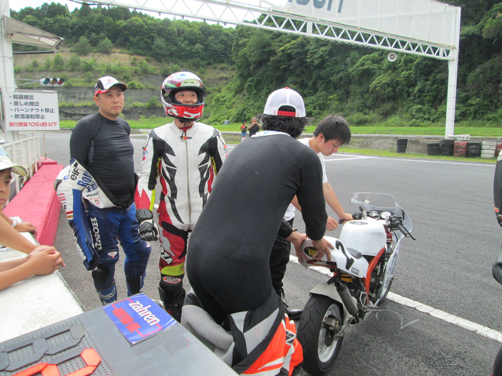 気合いを入れて出撃準備です。ですが冬場の余裕の生活でツナギがきつくなっていました。
