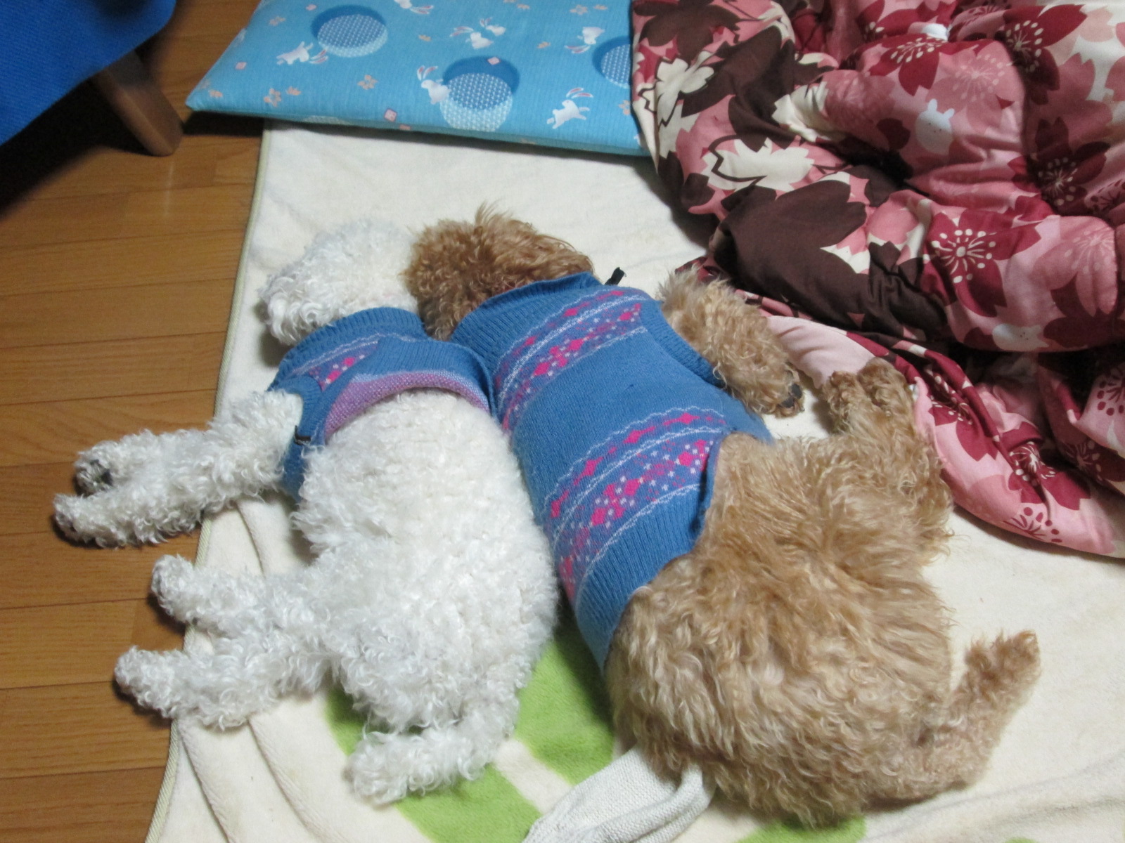 同じ様なカッコで寝ていたりこの様にくっついて寝ています。